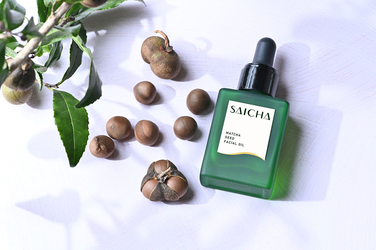 茶の実のオイルというのは皮脂の成分に近いので、肌への浸透とサラッとした付け心地がSAICHAの特徴です。