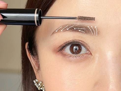 眉マスカラは、毛流れを整えながら表面の毛をサッと染めるくらいがベスト。ふさっと軽やかな毛並み眉を目指せます。