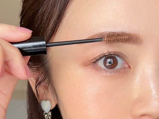 眉マスカラは自眉の毛流れに沿って、毛をとかすようにブラシを動かします。