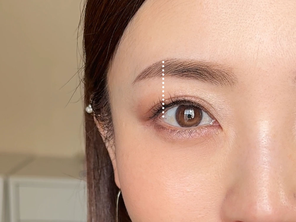 眉山の理想の位置は人それぞれ異なるため一概には言えませんが、眉山が感じられるトレンド眉に仕上げるには、目尻の真上よりやや内側にするのがポイント。描く前にアイブロウペンシルで薄く印をつけておくと眉山の位置がずれないのでおすすめです。