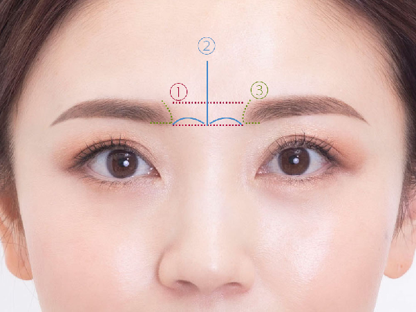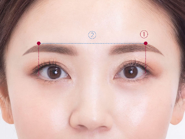 まずは左右の眉頭の高さ。左右の眉頭の高さが同じになるようにします。