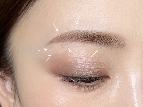 いつもより少し輪郭をしっかり描くと眉カットしやすくなります。眉頭と眉山を左右合わせると、眉全体が左右バランスよく仕上がります。