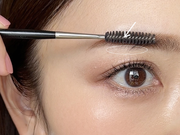 眉中や眉尻の毛の長さを調整したいときは、スクリューブラシで眉毛を斜め下にとかします。