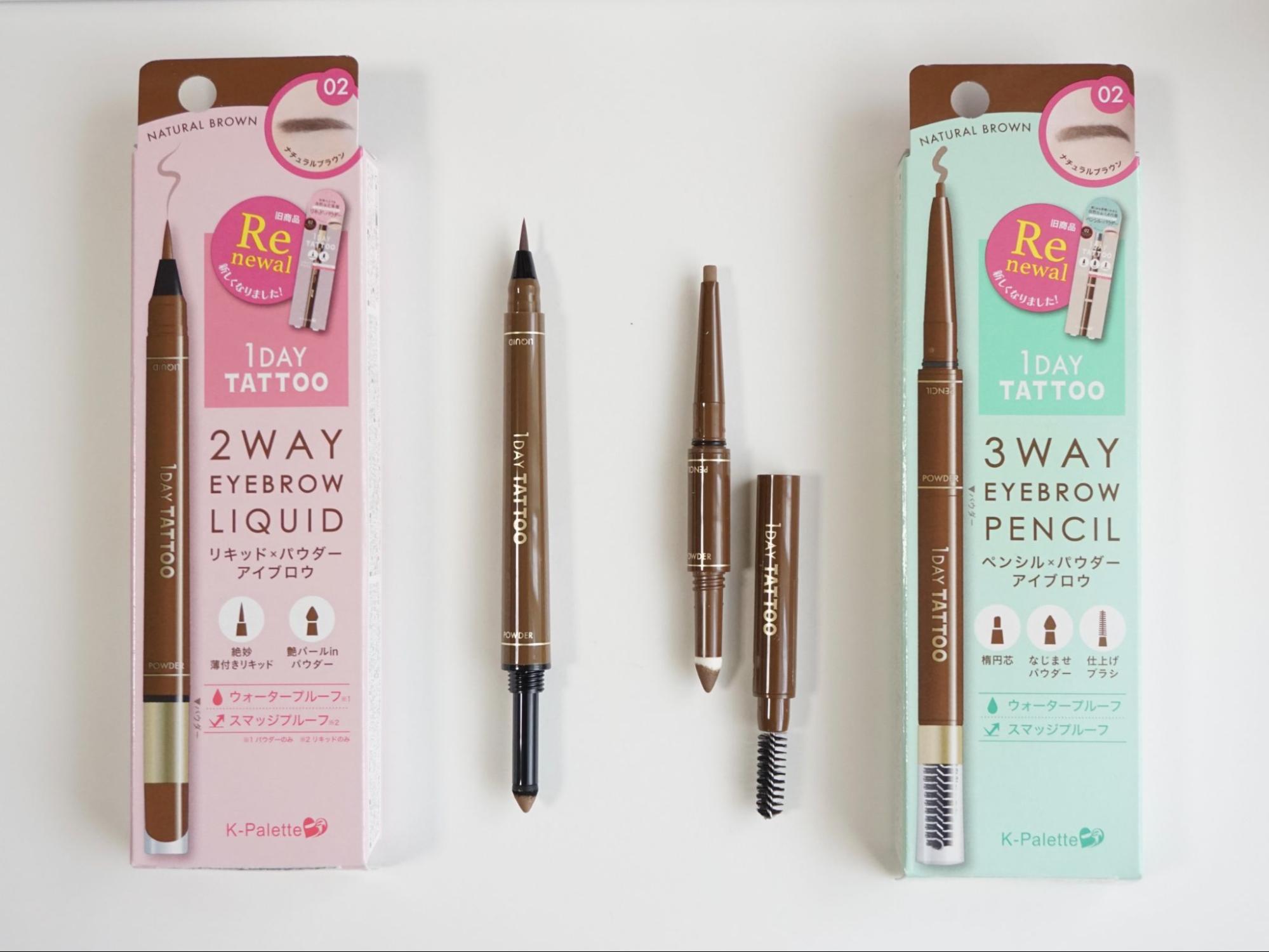 今回使用したK-パレットの『ツーウェイアイブロウ リキッド』、『スリーウェイアイブロウ ペンシル』、どちらも一本で眉メイクが仕上がるので、メイク直しの持ち運びコスメとしてもピッタリ。