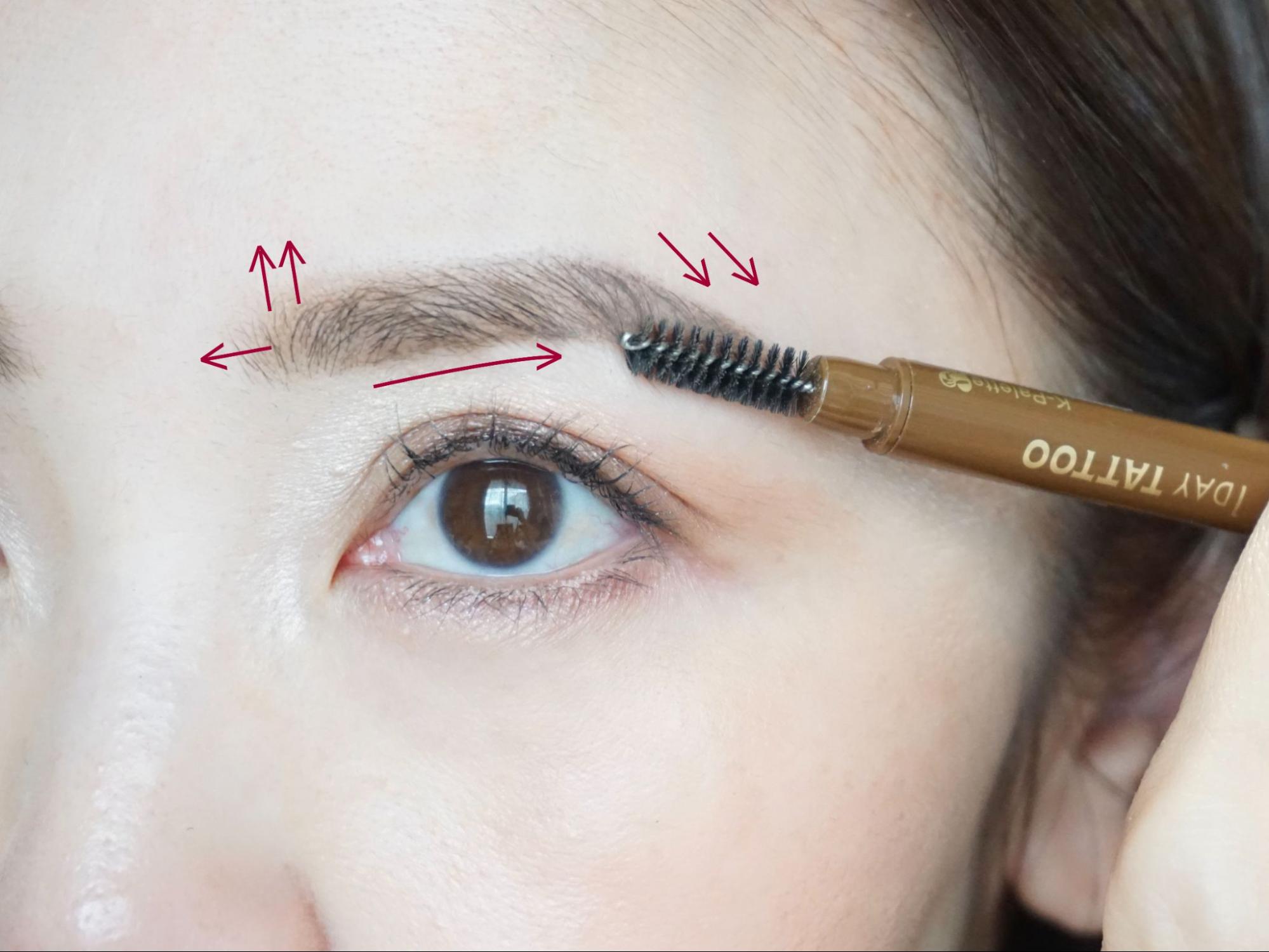 アイブロウペンシルで描き足した部分を中心にスクリューブラシでぼかします。ぼかすときに重要なのが力加減とぼかす向き。