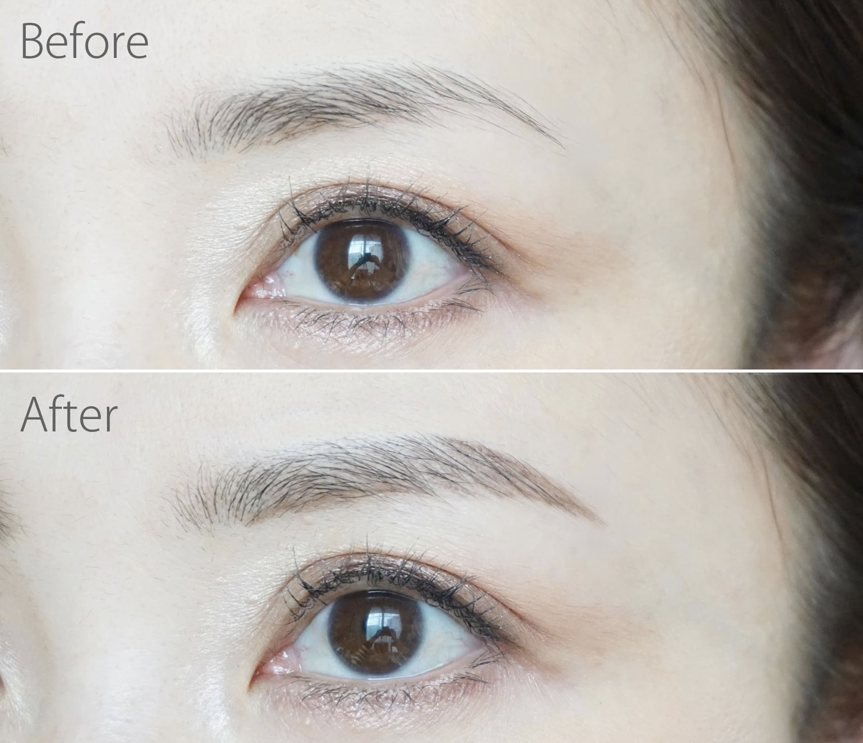 このアイブロウリキッドは、透明感があるのでベタづきせず、軽やかに描き足すことができます。筆にコシがあるので毛を一本一本繊細に描き足すこともできます。