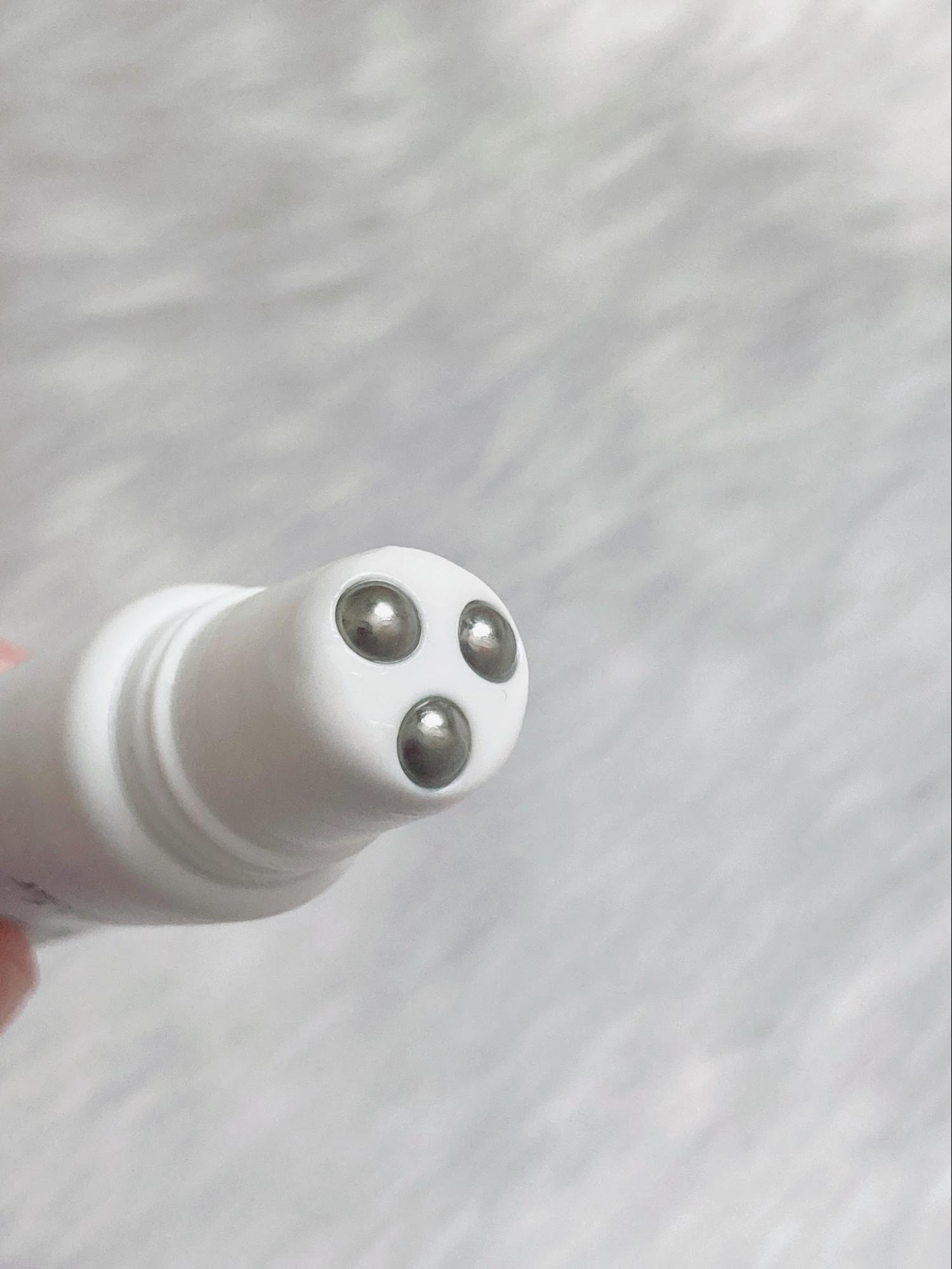 使い方は、ボール部分を肌に直接あててチューブを押しながら目頭から目尻に向かってすべらせるようにやさしく転がして使います。