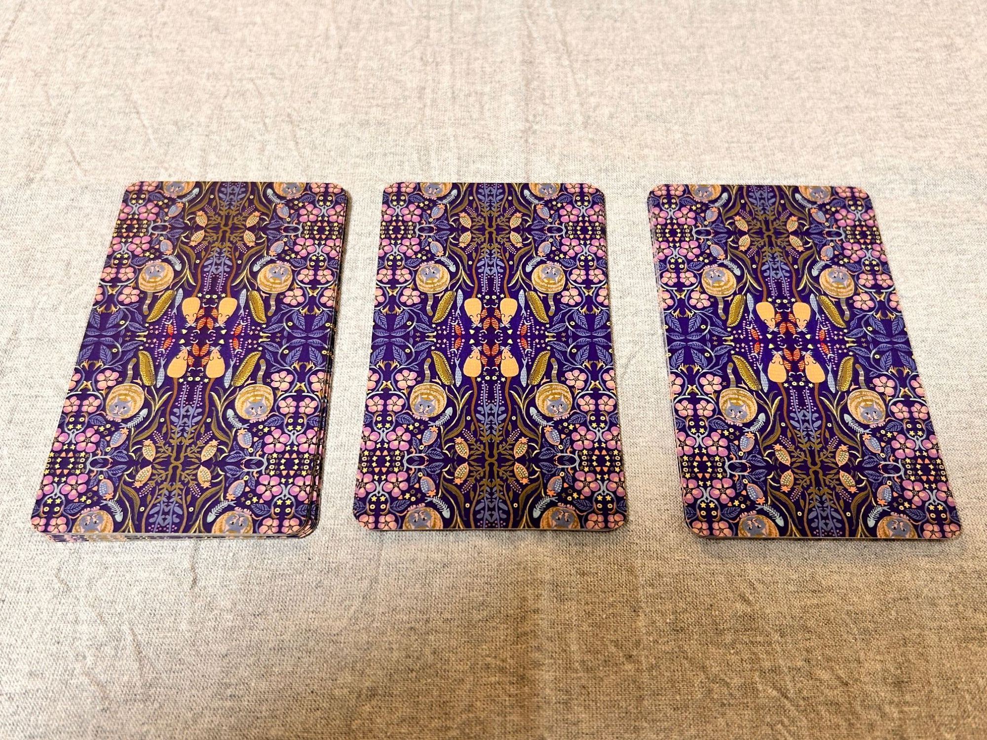 単純明快に答えがほしいときは、先ほどのように1枚引きするのでも十分ですが、もう少し深く自己と対話したいというときにおすすめなのが、3枚のカードを読み解く「スリー・カード」という手法です。