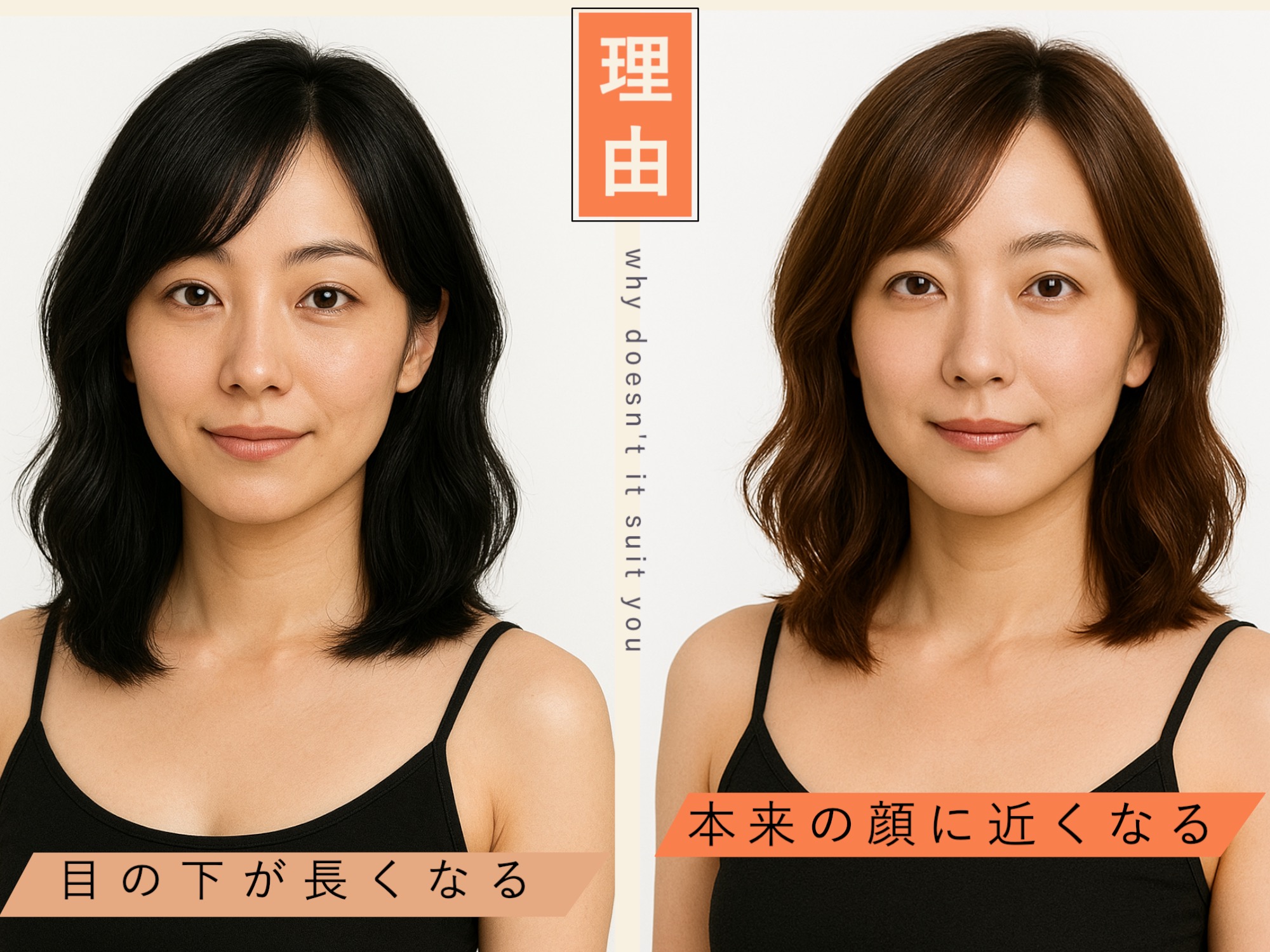 「黒髪鎖骨パーマ」は、この3つが重なる髪型です。目の下が長いと5歳くらい年齢が上に見えてしまいます。